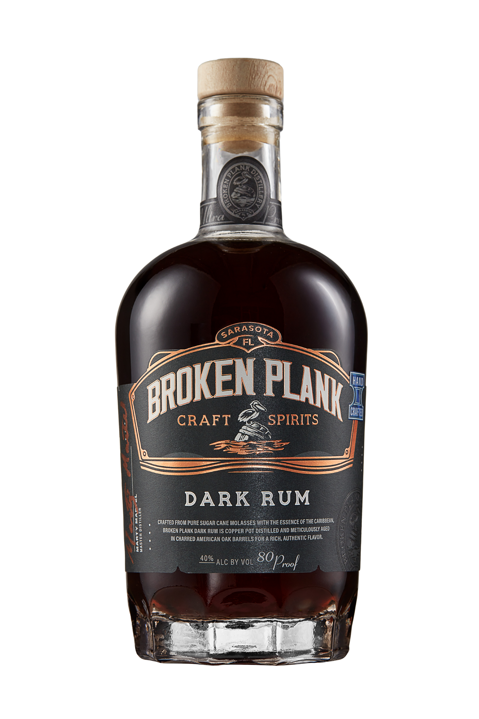 CRAFTED FROM 100% PURE FANCY GRADE SUGAR CANE MOLASSES, BROKEN PLANK RUM IS COPPER POT DISTILLED AND METICULOUSLY AGED IN CHARRED AMERICAN OAK BARRELS FOR A RICH, AUTHENTIC FLAVOR. EACH BOTTLE IS NUMBERED AND HAND SIGNED BY MASTER DISTILLER MARTY MARTEL. AVAILABLE IN EXTREMELY LIMITED QUANTITIES AT PREMIUM RETAILERS, RESTAURANTS, AND BARS. PROUDLY MADE IN SARASOTA, FL.